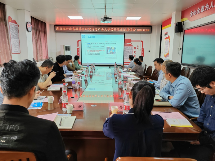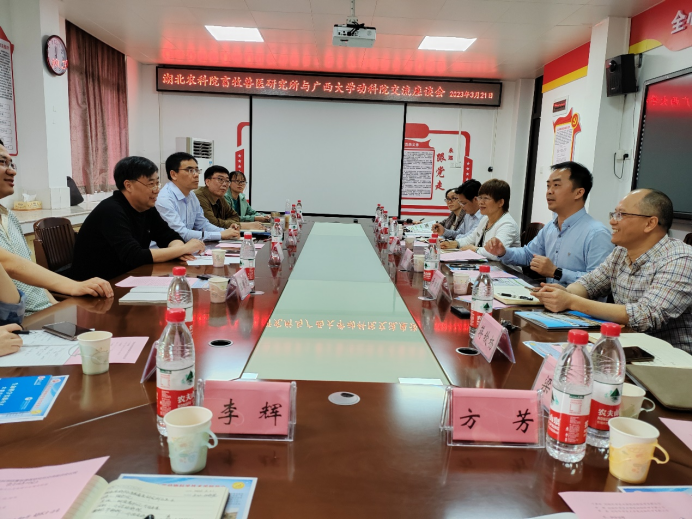 3月22日上午,湖北省农业科公司畜牧兽医研究所党委书记吴恢研究员一行六人来访,在williamhill302会议室与公司领导及教师开展团队建设、成果转化和科研平台建设经验座谈交流。座谈交流会由公司党委书记顾慕娴主持,公司经理陆阳清教授、副经理何家康教授和副经理韦祖樟教授、动物科学系和动物医学系的主任及副主任等十多位老师参加了座谈会。