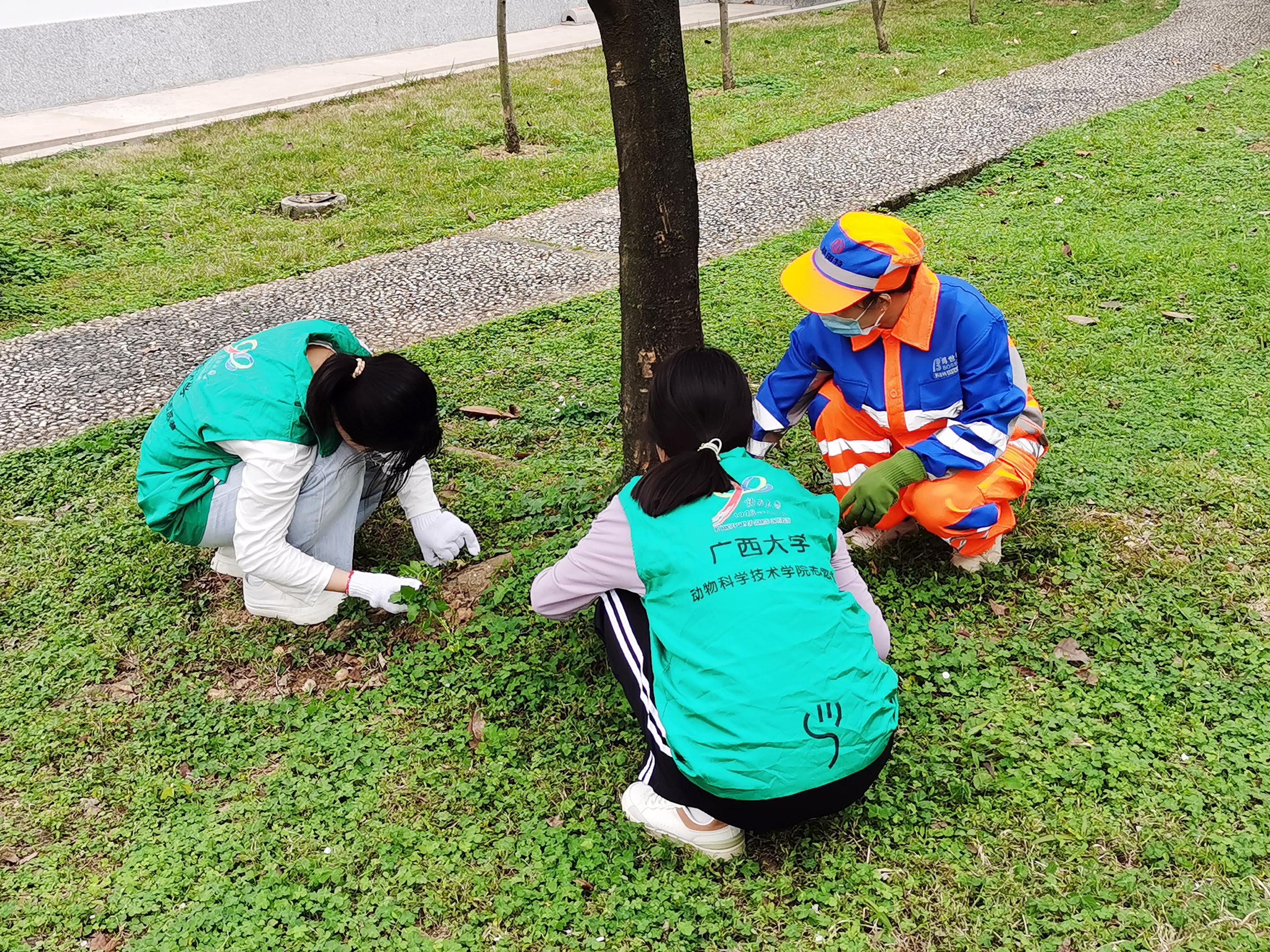 在绿化技术人员的指导下,师生们手持铁锹、铁镐、锄头等劳动工具,三至五人一组,分工协作,默契配合,认真完成除草、松土、施肥、浇水等工序。虽然大家忙得满头大汗,但现场到处都是劳动的欢声笑语。经过志愿者们的努力,整片绿地愈发整洁美观。