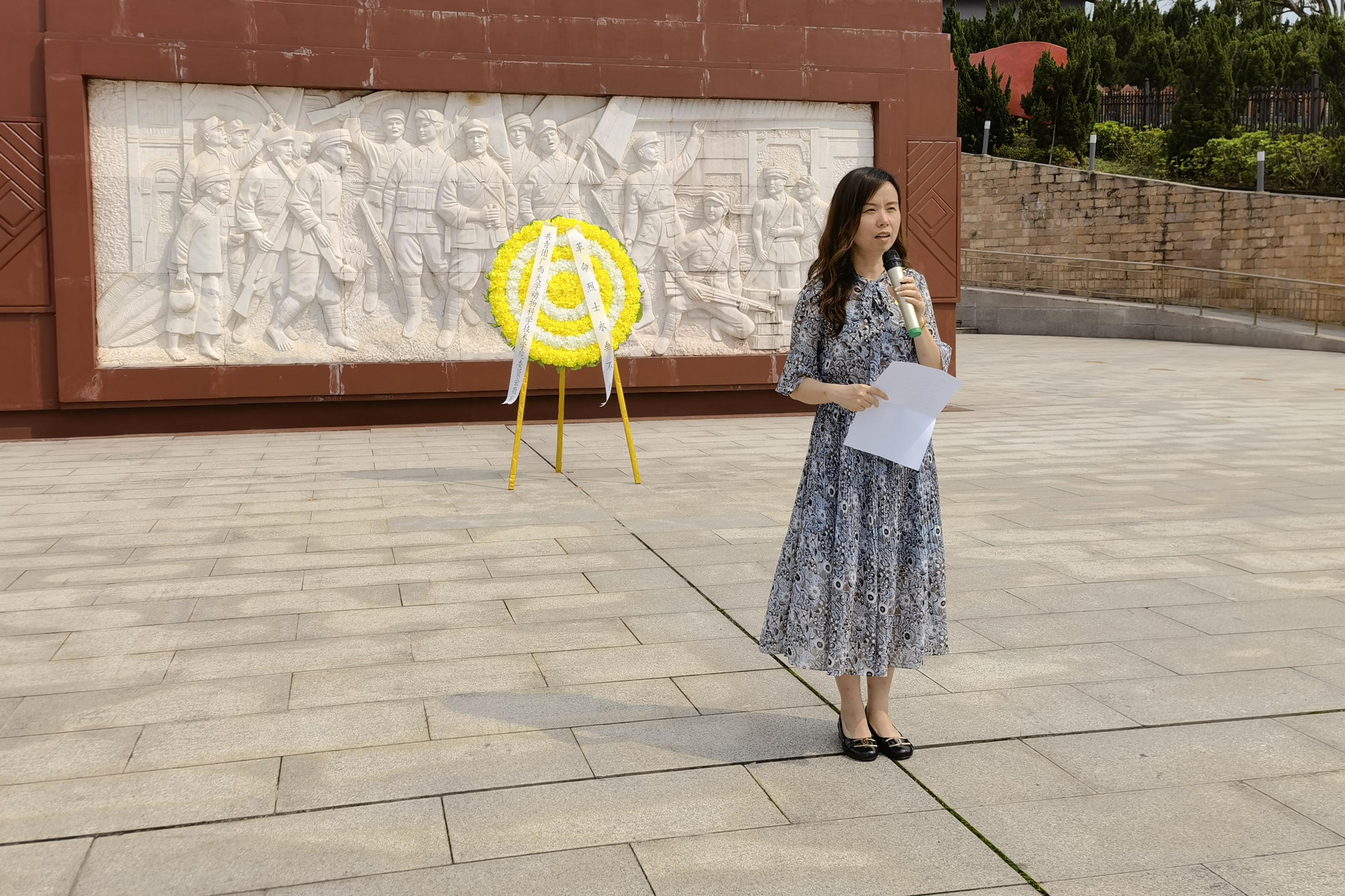 来到烈士公祭广场,全体师生先是肃立默哀,向为民族独立、人民解放和共和国建设事业献身的烈士敬献花圈。之后,李丽娜老师、杜佳璇同学分别作为师生代表发言。刘诚老师带领全体团员青年高举右手,面向团旗重温入团誓词。最后,大家绕行瞻仰纪念碑一周,深切缅怀革命先烈的丰功伟绩。