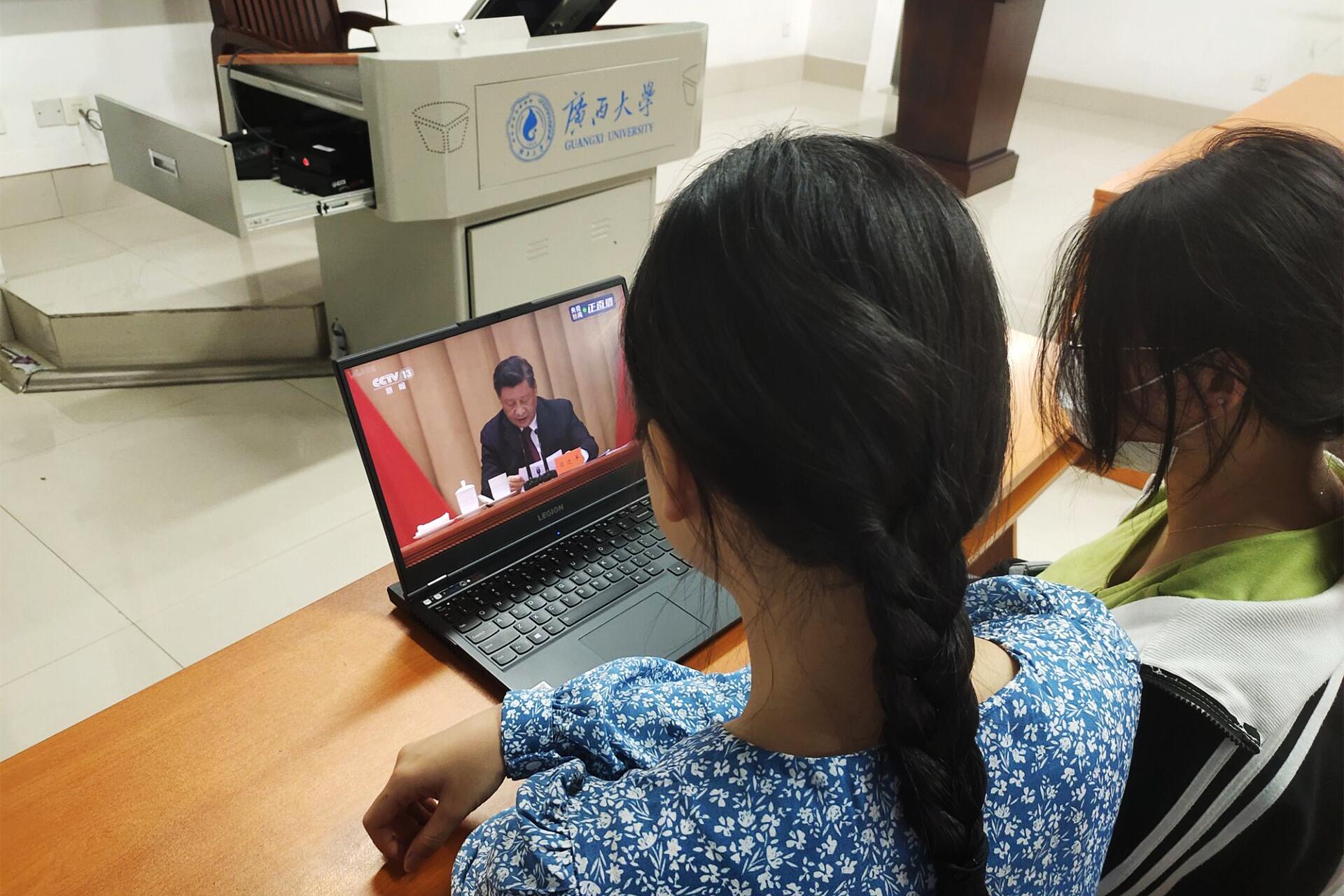 williamhill团委组织广大团员青年利用电视频道、新闻网站、新媒体平台等方式收看庆祝大会实况直播,学习习近平总书记重要讲话精神。