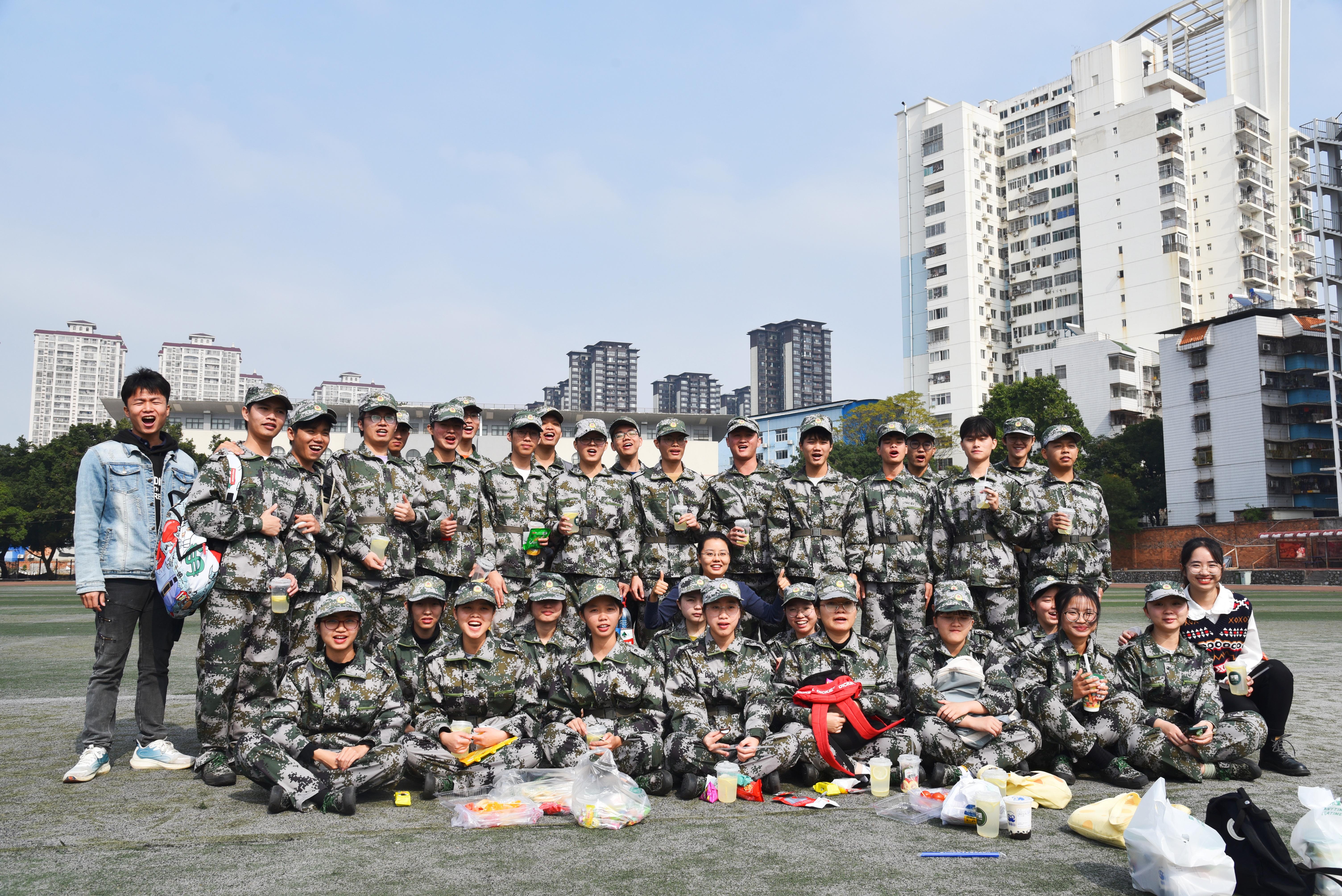 1月7日上午,williamhill团委书记李丽娜,团委副书记刘诚,辅导员彭可可、邹佳琪,班主任林波、师铭咸、丁嘉烽、宋星桔、黄鉴妮,以及数十名员工骨干来到东校园训练场亲切慰问2021级军训参训员工和带训教官。