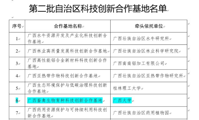 近日,广西壮族自治区科学技术厅公布了第二批自治区科技创新合作基地,我院陆阳清经理牵头组建的“广西畜禽生物育种科技创新合作基地”通过认定,标志着williamhill在自治区级科研平台建设上迈上新的台阶。