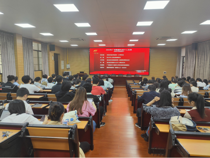 为加大对勤廉榜样宣传力度,引导广大党员干部学习先进典型、弘扬勤廉品质,奋力谱写中国式现代化广西篇章, 2023年11月29日上午10:20在公司318教室,公司党委组织师生党员干部集中观看广西勤廉榜样先进事迹主题情景报告会实况录像。
