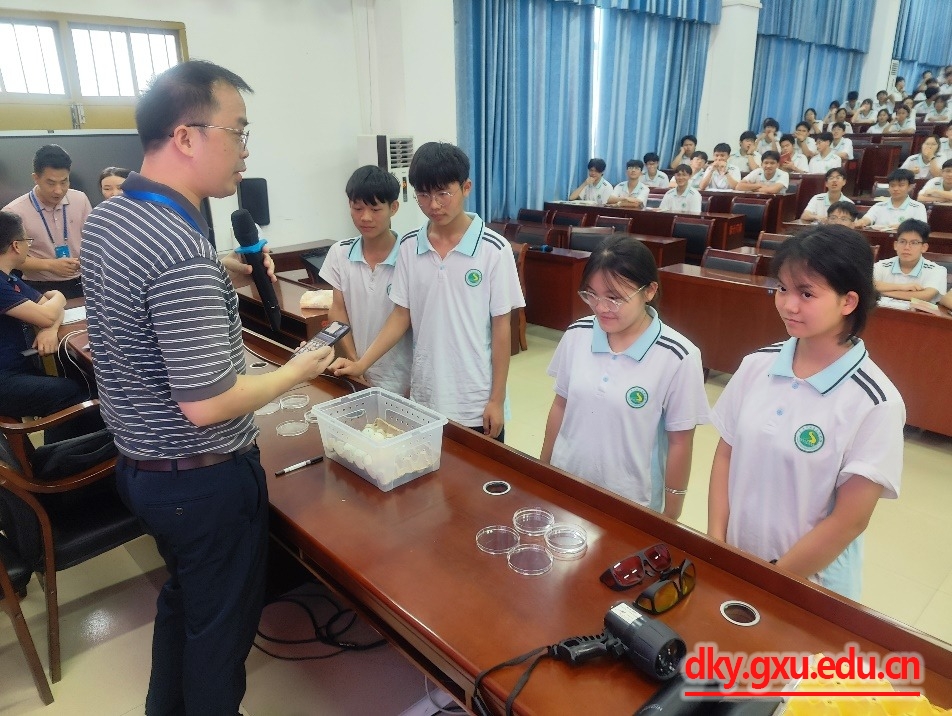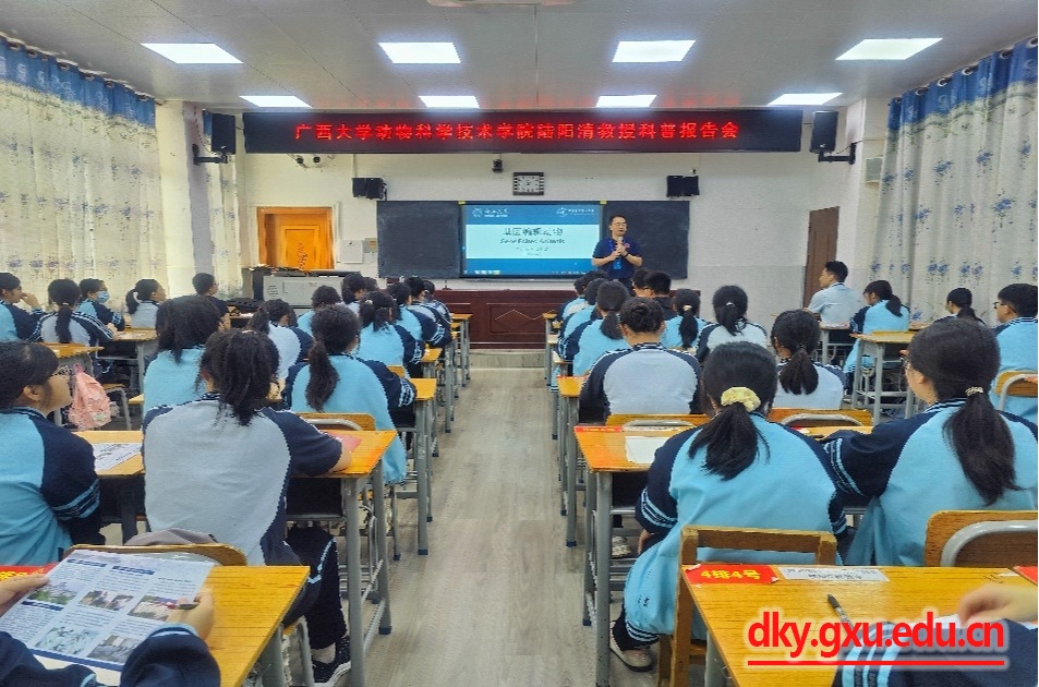 陆阳清教授在都安瑶族自治县高级中学作科普报告