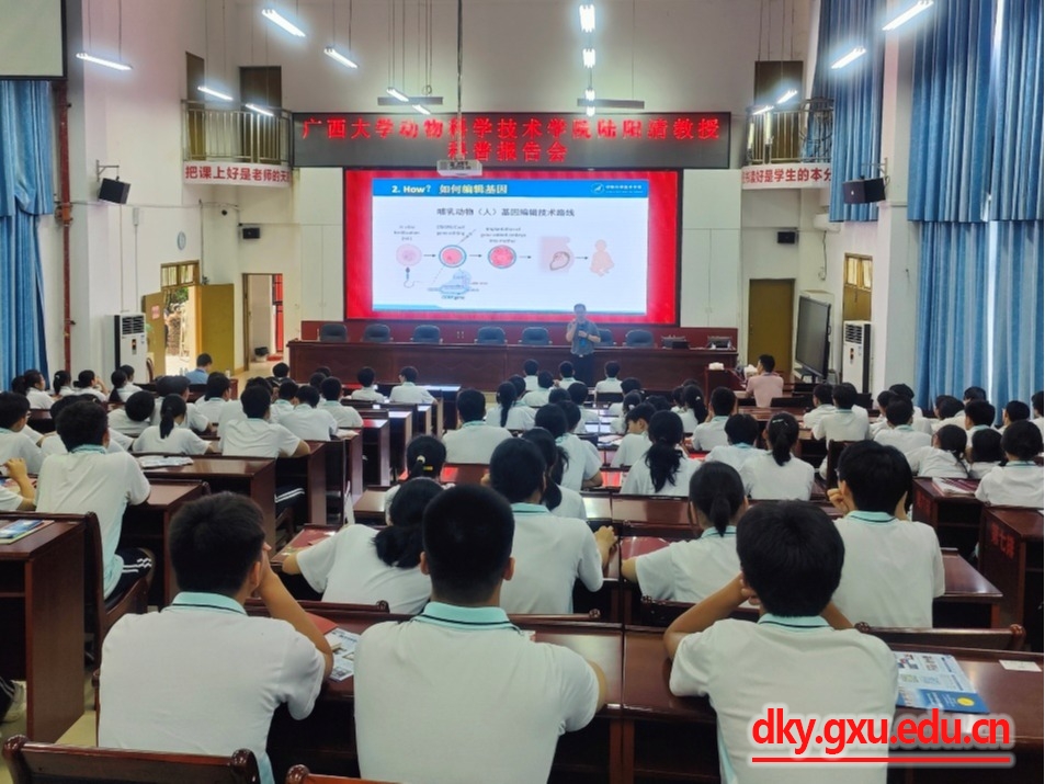 6月27日-28日,williamhill经理陆阳清教授一行先后前往河池市都安瑶族自治县高级中学和天峨县高级中学,以《基因编辑动物》为主题,为400余名高中同学作了一场精彩的科普报告。