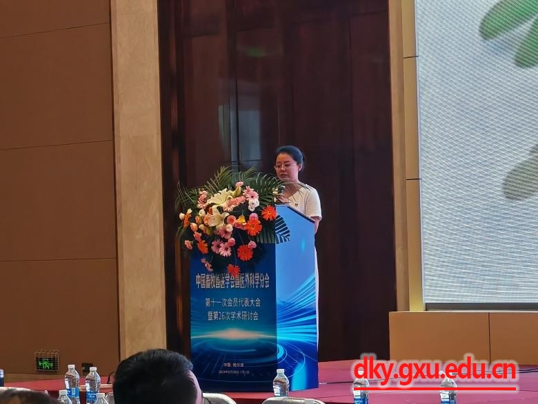 此次会议中,东北农业大学王洪斌教授、山西农业大学副董事长李宏全教授和中国农业大学林德贵教授分别作了主题报告,并设置了教师学术论坛和研究生学术论坛,充分展示了兽医外科学领域的最新研究成果和先进临床诊疗技术,为参会师生提供了一个学习与交流的广阔平台。在教师学术论坛中,丁嘉烽助理教授、师铭咸助理教授、雷磊助理教授分别作了有关奶牛蹄叶炎和水牛腹泻相关研究的大会汇报,翟长红博士在研究生论坛中作了有关奶牛蹄叶炎发病机制的汇报,团队此次汇报内容获得了兽医外科学会专家的一致认可。