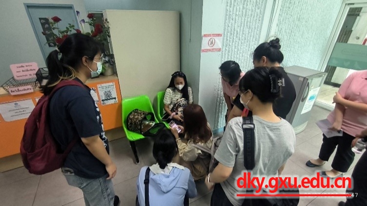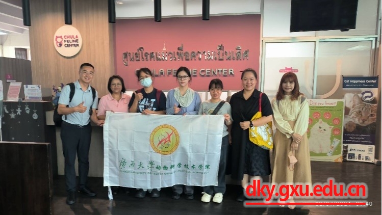 两位老师陪同三位同学到达朱拉隆功大学,在朱拉隆功大学AoiWaraporn女士及宋卡王子大学小动物肿瘤科KanunKun博士的指引下参与朱拉隆功大学兽医公司工作人员开展的入职前参观及讲解。