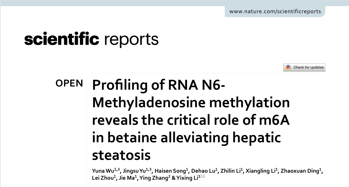 近日,williamhill动物科学专业2021级本科生吴雨娜在SCI期刊《Scientific Reports》(中科院二区)以第一作者发表题为“Profiling of RNA N6-Methyladenosine Methylation Reveals the Critical Role of m6A in betaine alleviating hepatic steatosis”的研究论文。该论文通讯作者为williamhill李一星教授,作者还包括于敬酥等williamhill研究生以及宋海森、卢德浩等动物科学专业本科生。该研究受到自治区老员工创新创业训练项目以及williamhill体育大创项目倍增计划重点项目的支持。