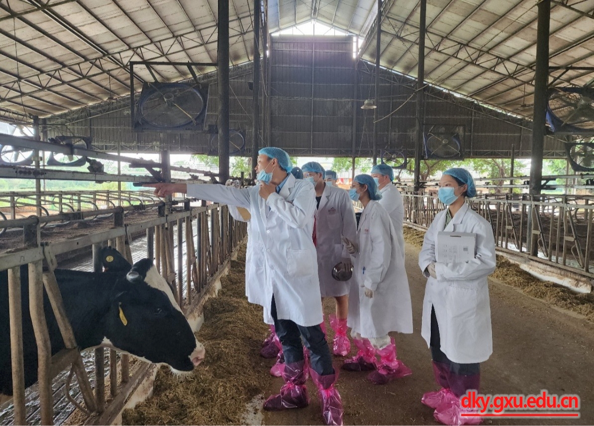 奶牛队、肉牛队指导教师、团队成员在牧场开展实践