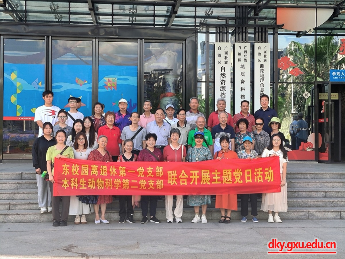6月6日,东校园离退休教师第一党支部与本科生动物科学第二党支部组织党员走进广西自然资源博物馆,联合开展主题党日活动。