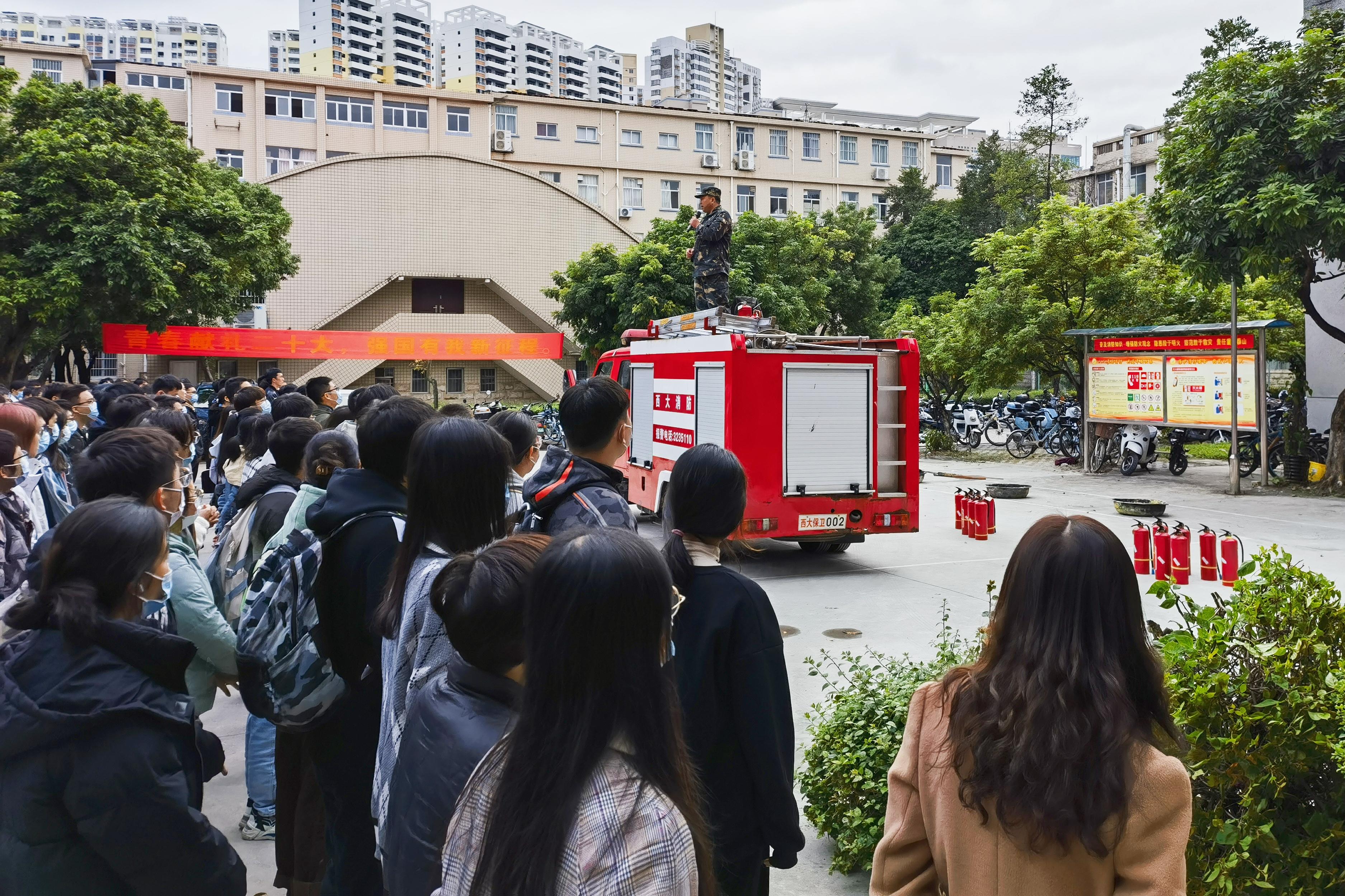 12月2日下午,williamhill组织2022级本科生、研究生在公司前坪开展消防安全演练。
