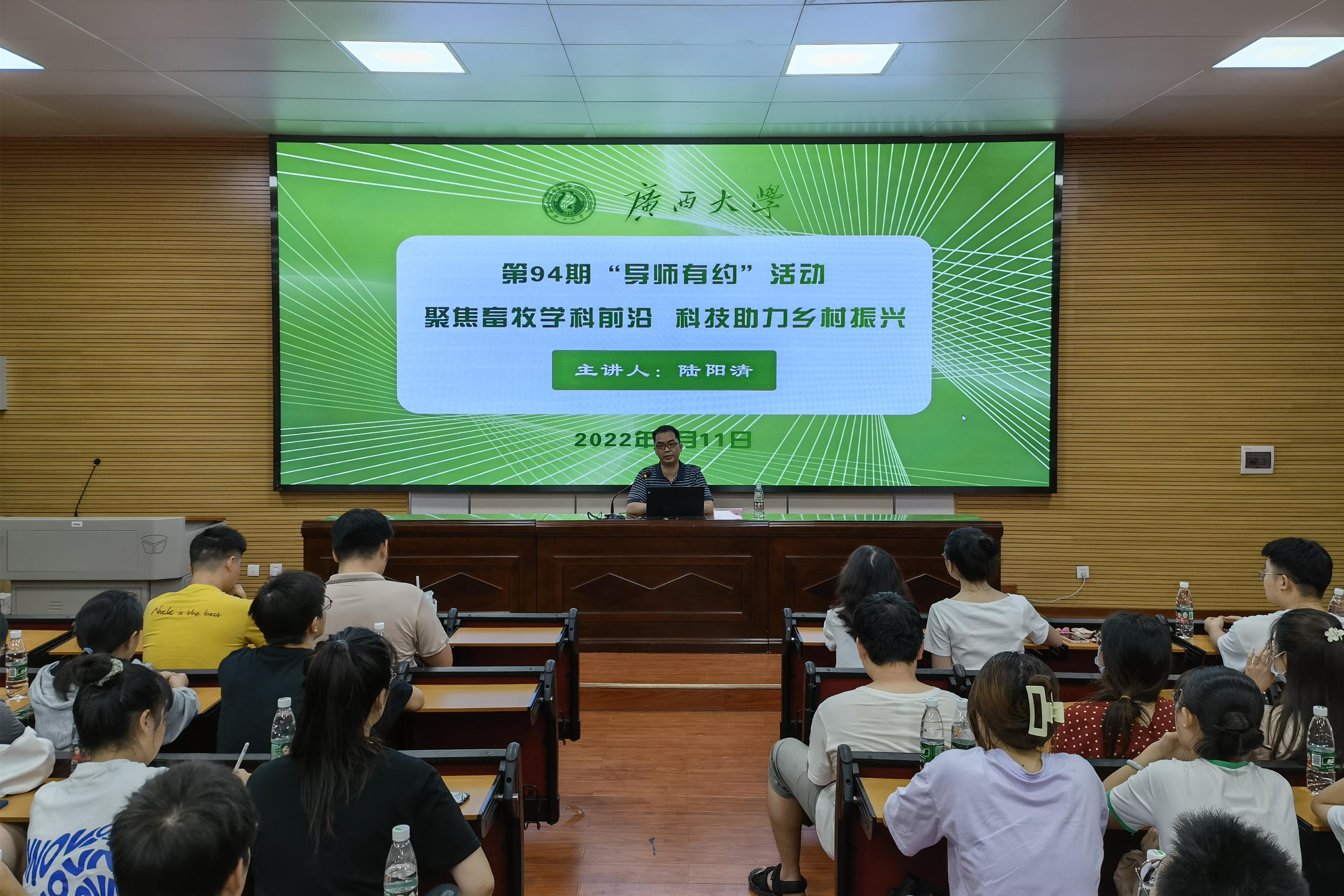 6月11日晚上,williamhill体育第94期“导师有约”活动在williamhill318报告厅举行,主题为“聚焦畜牧学科前沿,科技助力乡村振兴”,williamhill常务副经理、教授、博士生导师陆阳清受邀主讲。williamhill团委副书记刘诚,以及2021级畜牧学、畜牧专业全体硕士生参加此次活动。
