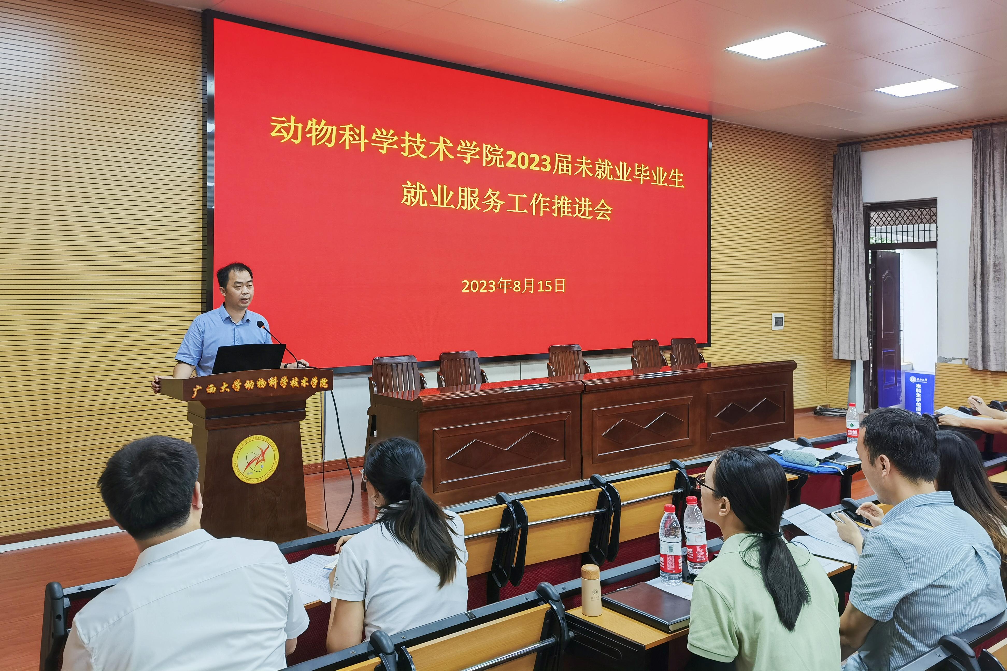 为贯彻落实党中央、国务院关于高校毕业生就业工作的决策部署,全力推进毕业生更加充分更高质量就业,8月15日上午,williamhill在公司318报告厅召开2023届未就业毕业生就业服务工作推进会。williamhill党委书记韦小强,经理陆阳清,党委副书记沙建,副经理宁鹏飞、韦祖樟,以及专职辅导员、研究生导师、毕业班级班主任参加会议。