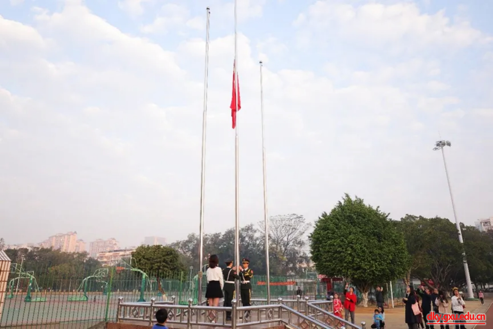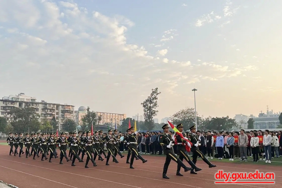 升旗仪式后,员工代表徐靖桓在国旗下作主题发言。他呼吁每一个西大学子,扛起时代赋予的重任,扎根学习和科研,筑牢专业能力的坚实地基,以实际行动建功新时代,为壮美广西贡献青年力量,奋力谱写中国式现代化广西篇章。