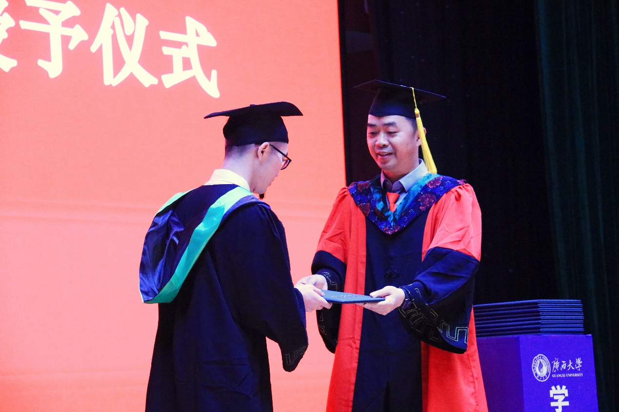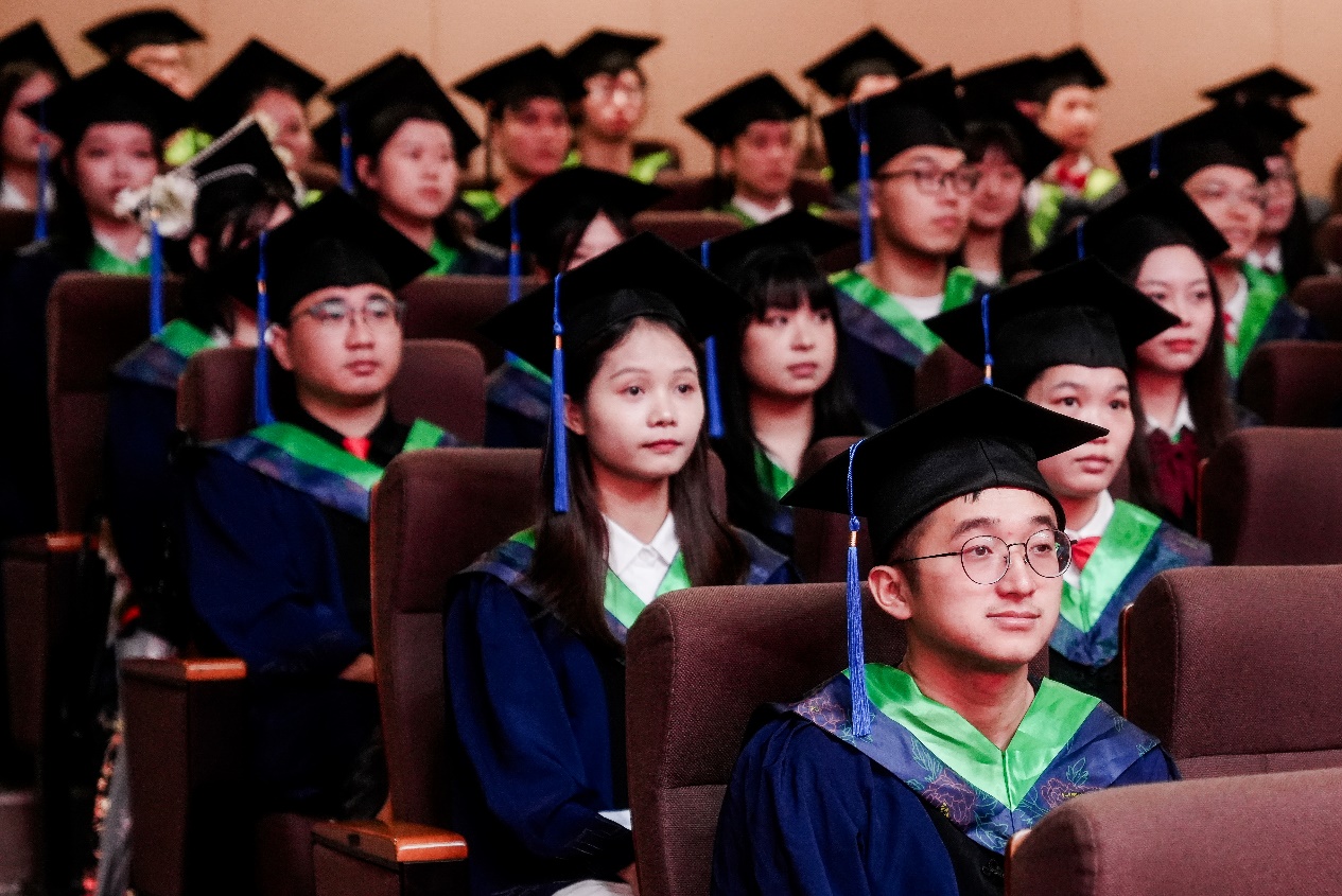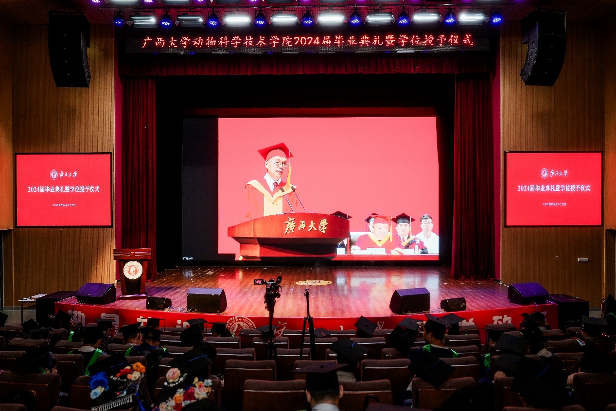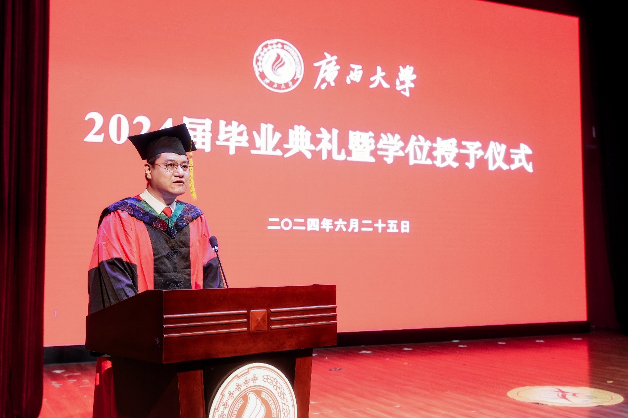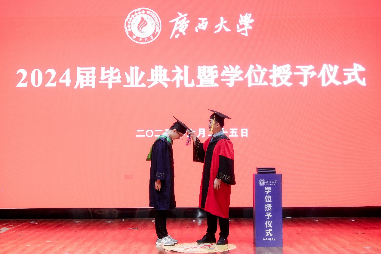 “复兴中华,发达广西”“努力,努力,大家一齐努力”,2024届毕业典礼暨学位授予仪式在奏唱校歌声中落下帷幕。