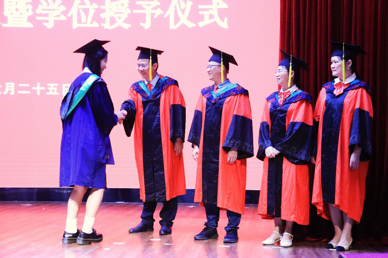 教师代表祝贺毕业生获得学位