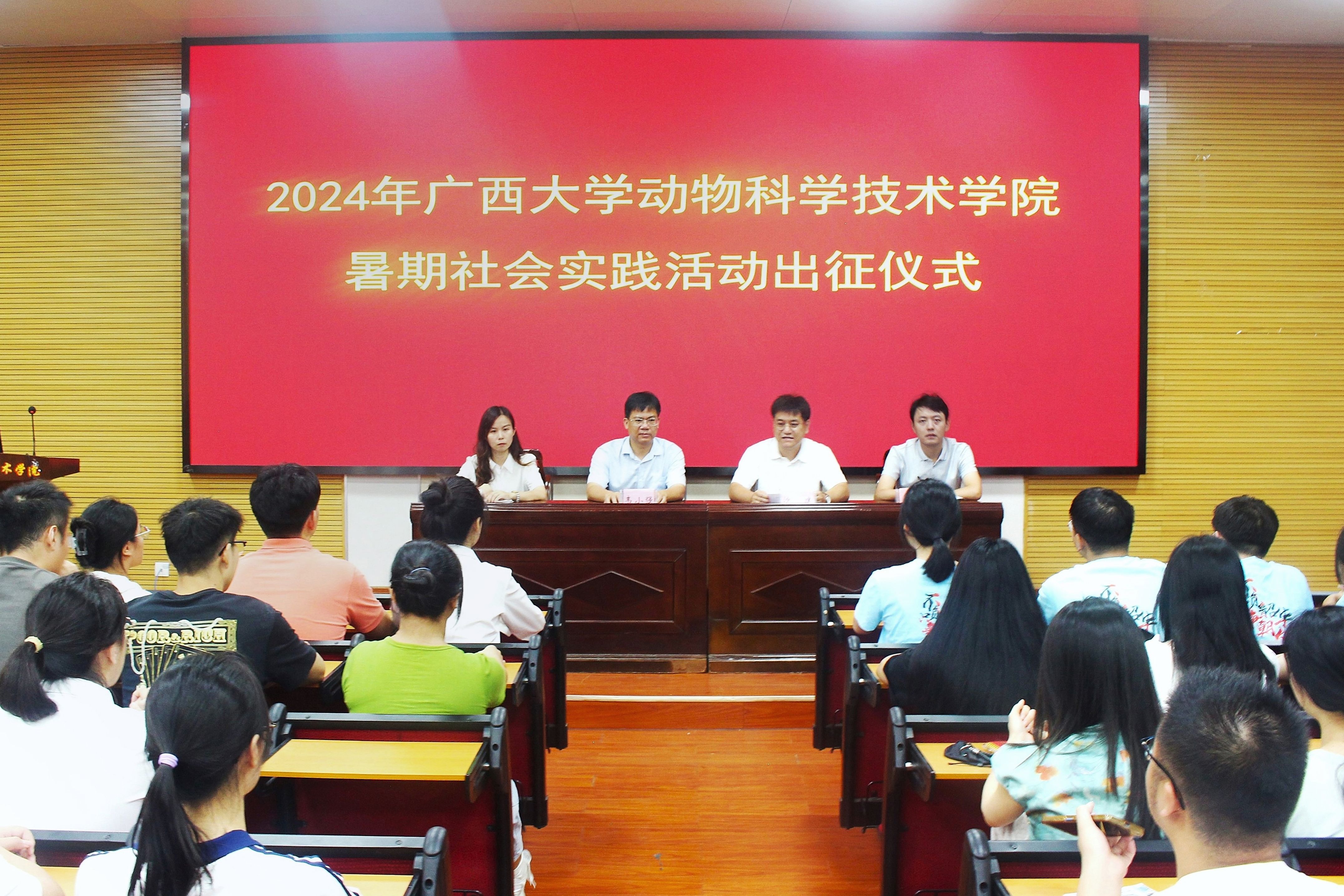 沙建老师在仪式上作动员讲话。他指出,近年来,公司积极开展社会实践活动,充分发挥畜牧兽医水产学科专业优势,主动服务乡村振兴战略,为促进公司人才培养、地方经济建设起到了积极作用,希望各个社会实践团队紧扣活动主题,精心组织安排,深入基层调查研究,带着问题走出去,带着成果走回来,努力提升社会实践成效。