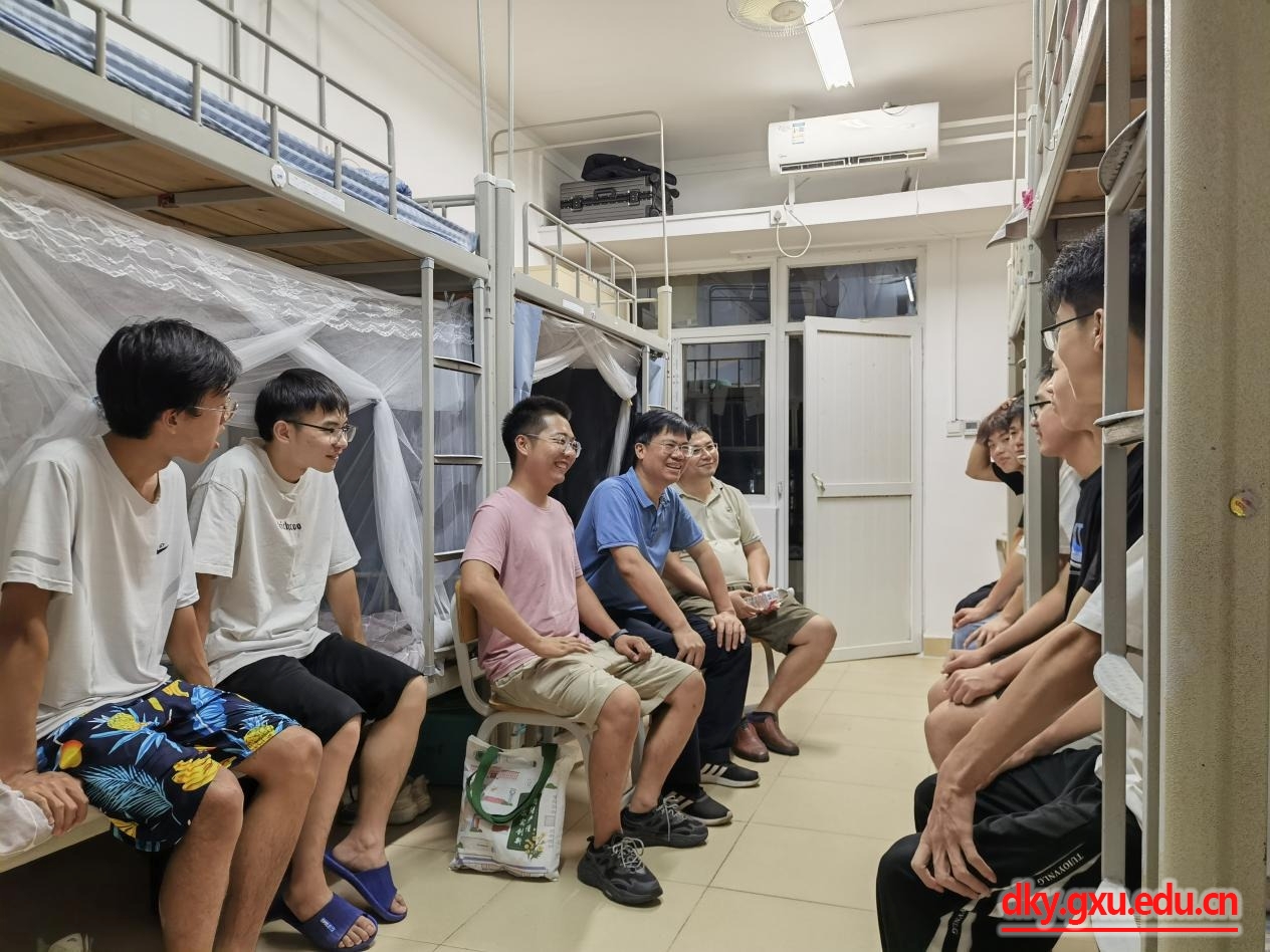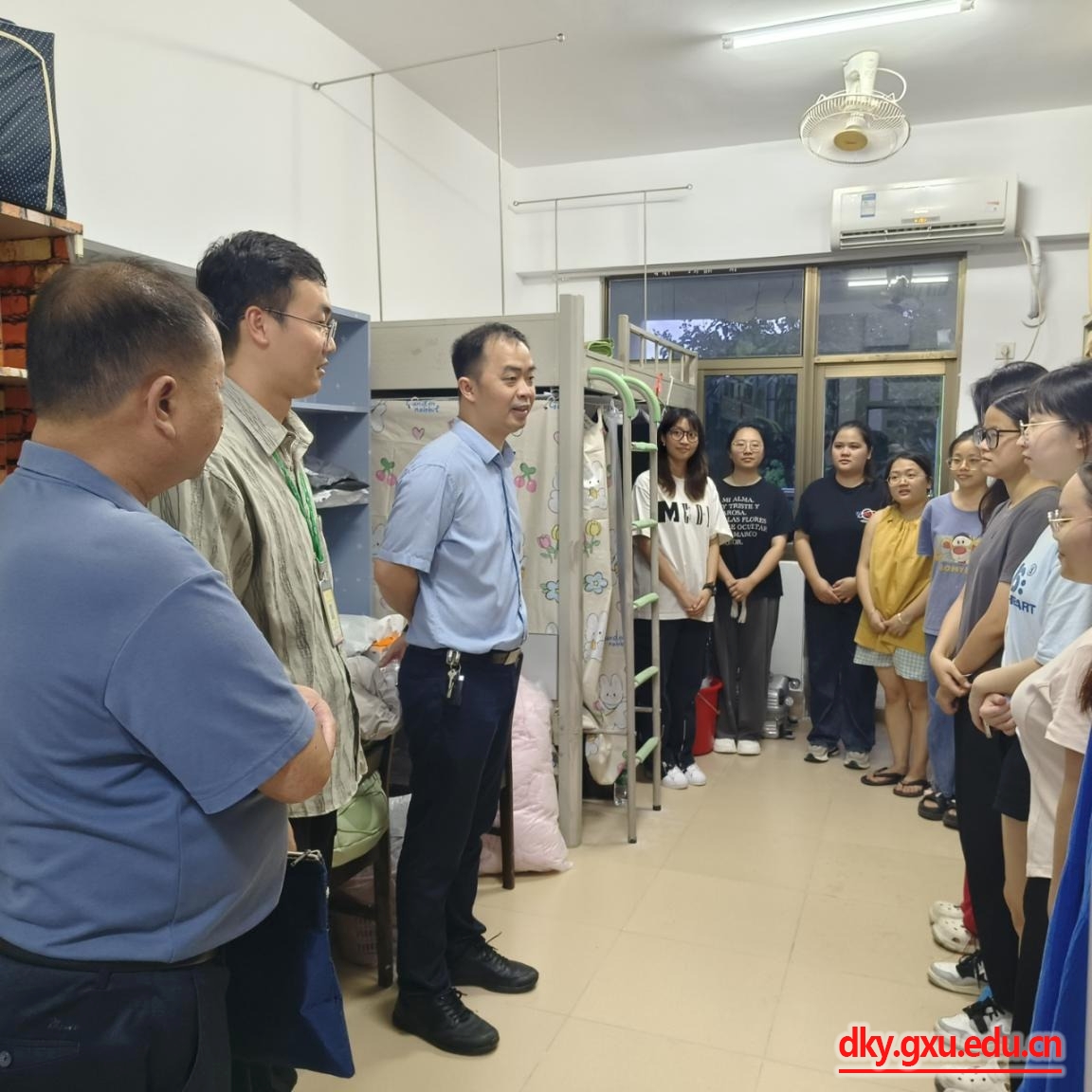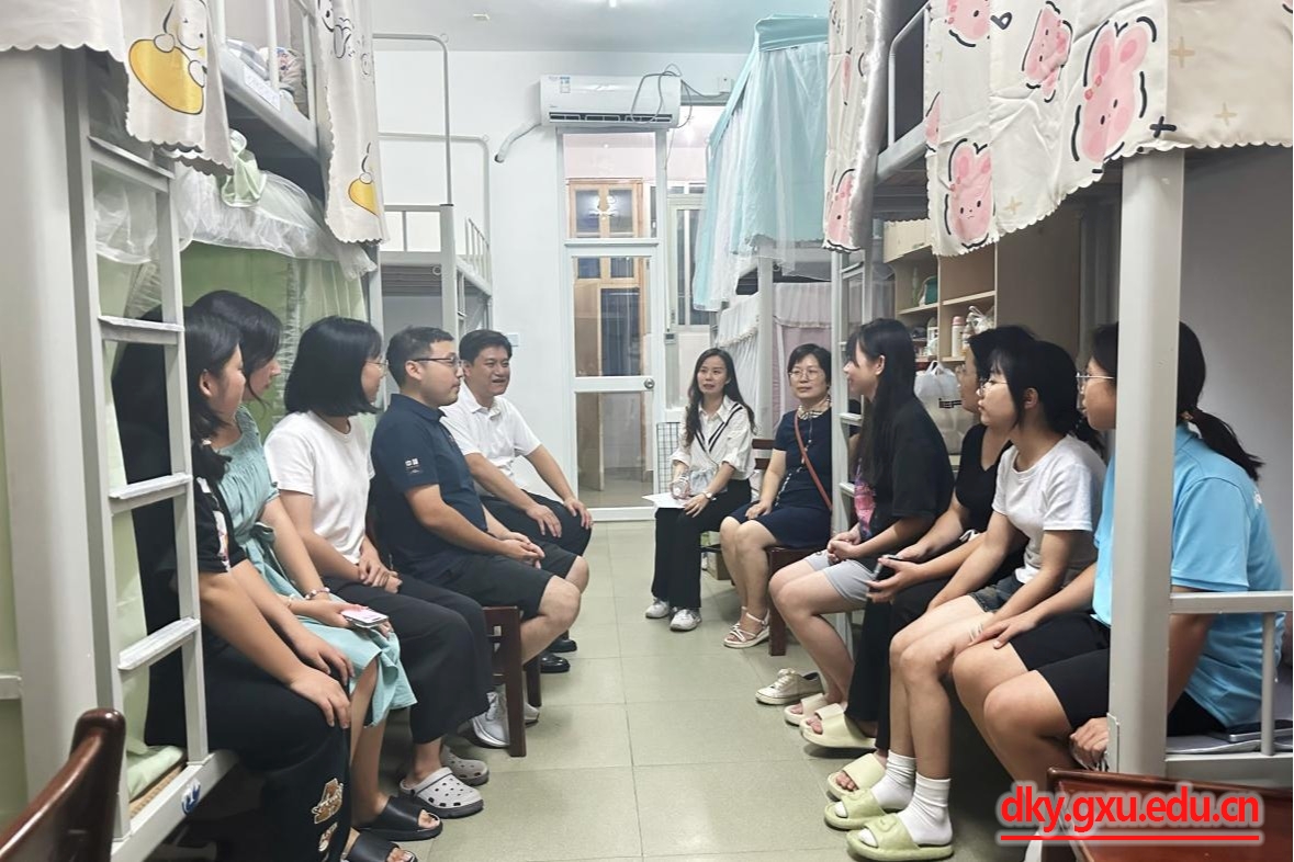 9月1日晚上,williamhill体育williamhill党委书记韦小强,经理陆阳清,党委副书记沙建,副经理宁鹏飞、何家康,团委书记李丽娜,团委副书记刘诚,辅导员崔月明、邹佳琪、马朝阳,班主任尹业师、贺宇成、罗栋、时学锋,以及团委、员工会、研究生会员工骨干,来到东3栋、东19栋、东31栋和东34栋员工宿舍,走访慰问2024级本科生、研究生。