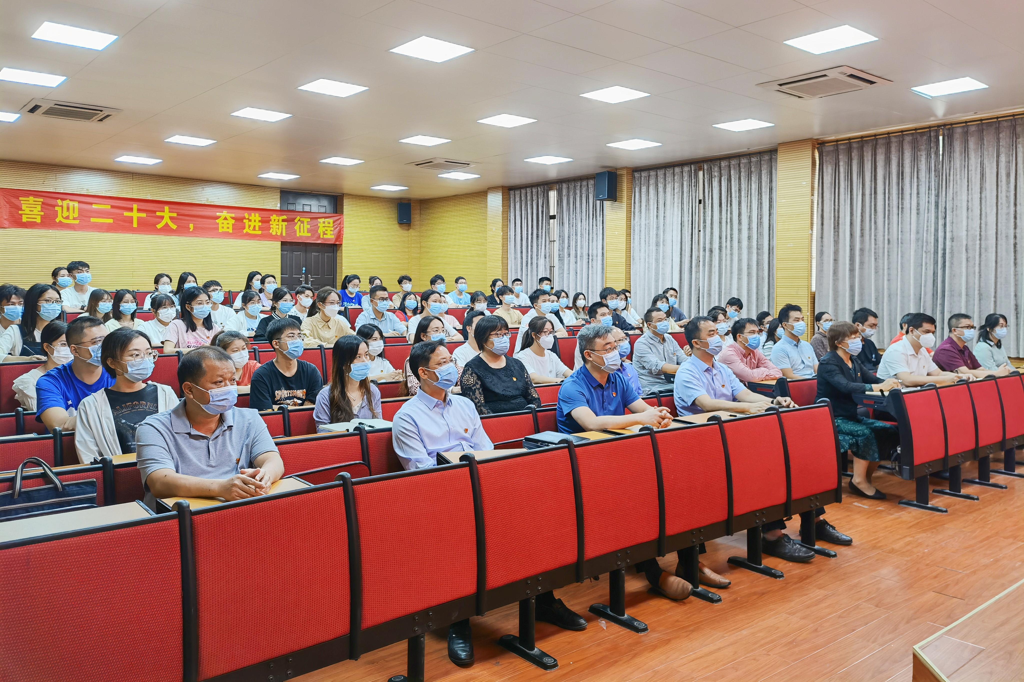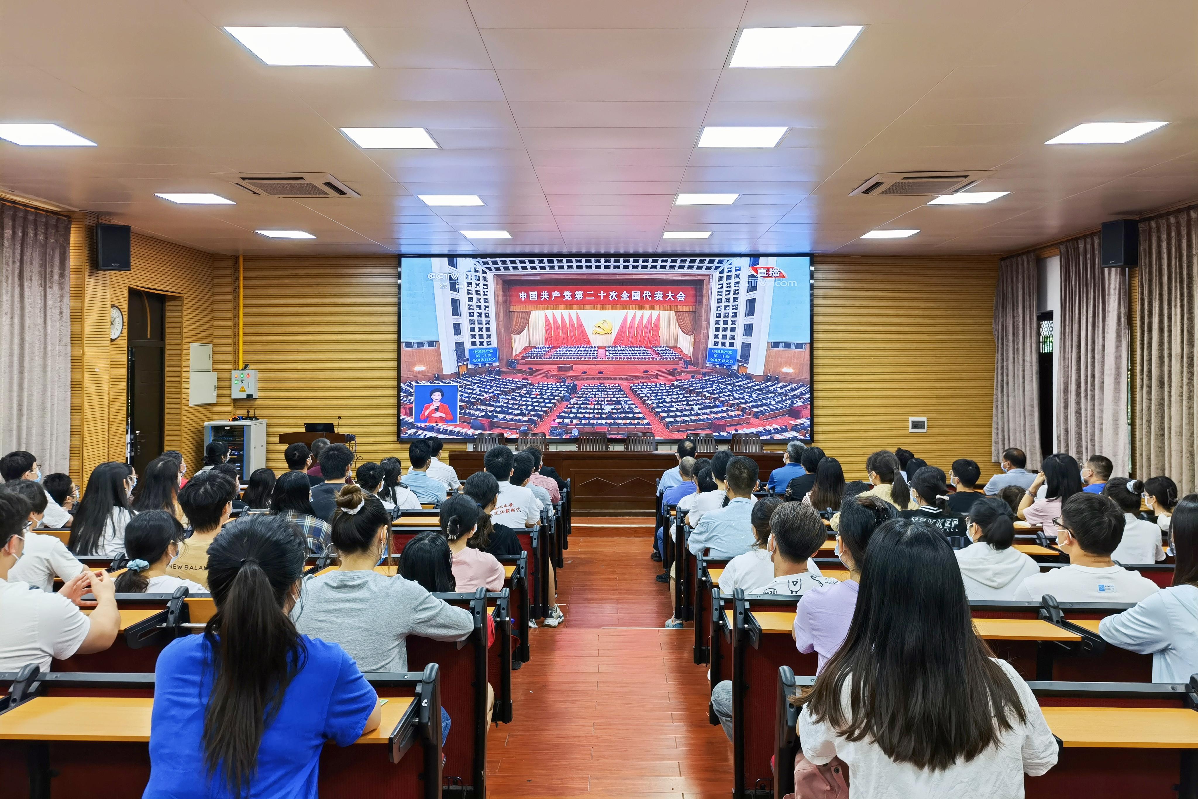 10月16日上午,举世瞩目的中国共产党第二十次全国代表大会在人民大会堂隆重开幕。williamhill组织广大党员干部、师生员工收听收看大会开幕盛况,认真聆听习近平总书记所作题为《高举中国特色社会主义伟大旗帜 为全面建设社会主义现代化国家而团结奋斗》的报告。