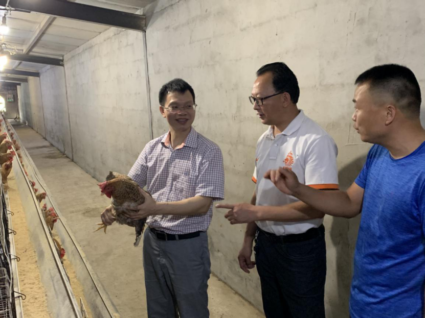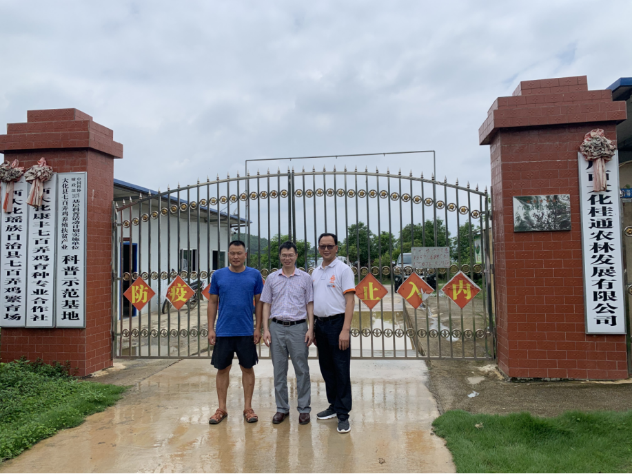 上图为韦天超副教授到广西巴马小谷鸡养殖有限公司的种鸡场、贫困村养鸡扶贫基地进行技术指导、交流和禽病防控知识培训;