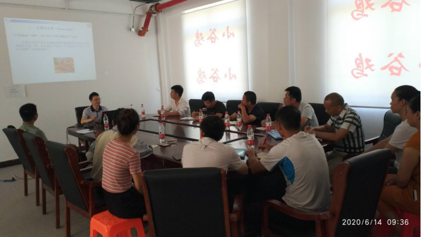 上图为韦天超副教授到广西巴马小谷鸡养殖有限公司为扶贫基地技术员进行禽病防控知识培训;