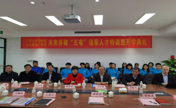 2021年3月21日下午,为了更好的培养williamhill体育“五有”领军人才,加强院企合作,williamhill与正大集团联合举办养猪"五有"领军人才特训班,在3月21日下午隆重举办了开班仪式,本次开班仪式由刘槐林总经理主持,出席的有williamhill体育williamhill党委书记顾慕娴书记,党委副书记沙建,司红彬副经理,陆阳清副经理,周磊副经理,以及正大集团广西区高管赖平生总裁,刘琴万总经理,刘槐林总经理,王春江总经理,赵日浪等。