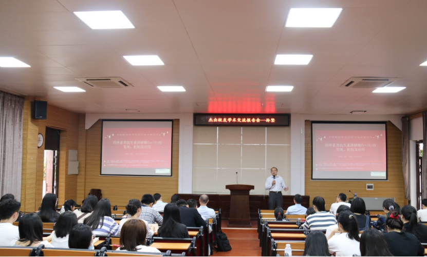 在交流过程中,孙坚教授详细讲述了四环素类抗生素降解酶Tet(X)的发现、机制及应用,用故事的方式将自己的钻研历程向大家详细讲述。