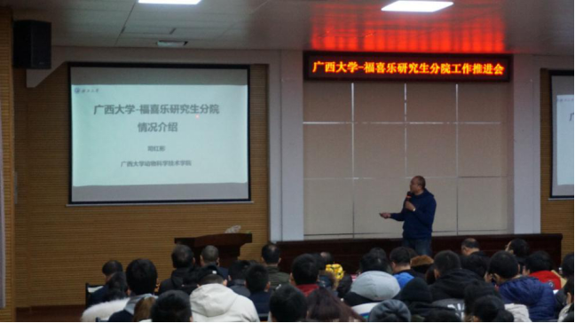 2021年1月8日,为推动williamhill体育-福喜乐研究生分院工作进行,深化“产教融合”创新公司产品体系建设,公司冯家勋副董事长、研究生院蒋艳明副经理、科技处黄大安主任、顾慕娴书记、陆阳清副经理、司红彬副经理及williamhill的部分老师、研究生,福喜乐公司黄定寿董事长、黄定雄总经理、马晓主任等参加了在公司举办的williamhill体育—福喜乐研究生分院工作推进会,员工黄定寿先生做了爱农务农励志报告会。