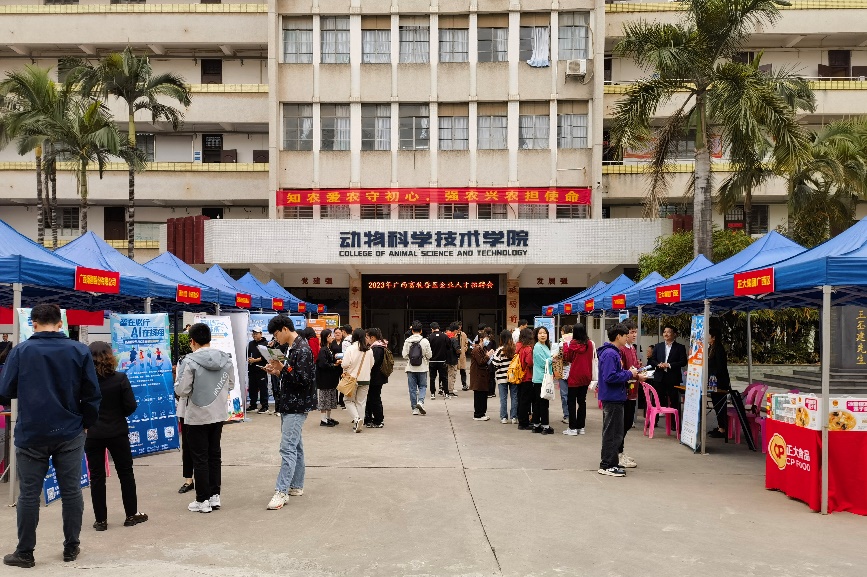 本次招聘会邀请了正大集团、广西农垦、自治区水牛研究所、温氏集团、双胞胎集团、力源集团、大北农集团、牧原集团、扬翔股份、新希望六和、瑞鹏宠物医疗等来自全国各地的60余家畜牧兽医、食品生产、生物医药、宠物诊疗等领域用人单位来校选聘英才,提供了生产管理、技术服务、产品研发、市场营销等千余个招聘岗位,涵盖本科、硕士和博士多个层次,为员工就业、实习带来了更为广阔的选择空间和发展平台。