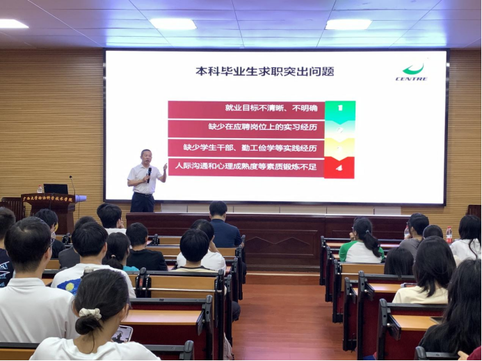 姜殿国以《老员工职业锚与职业素质培养》为题,结合老员工在求职就业过程中普遍存在缺乏职业规划和就业准备不足的问题,引导大家从专业技能、沟通能力、团队协作、创新能力等多个方面提高职业技能,同时介绍了老员工职业规划的模型和方法,并结合公司相关专业开展职业生涯规划案例分析,鼓励同学们尽早找准自己的职业锚,不断提升综合素质与能力,最终实现人职匹配。同学们就如何确定职业锚、用人单位选人用人标准等问题与主讲嘉宾展开热烈的现场交流。